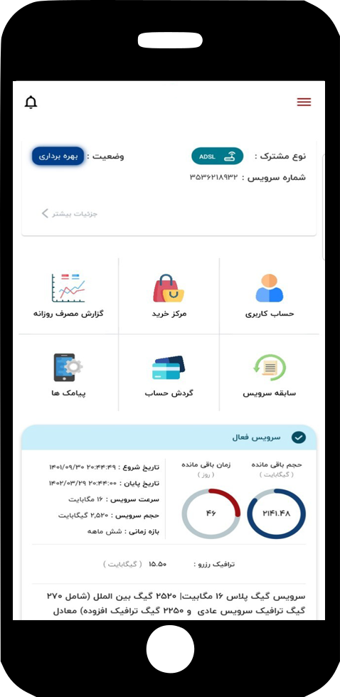 با اپلیکیشن داتک به راحتی میتوانید کلیه سرویسهای اینترنت داتک را روی گوشی موبایل خود مدیریت نمایید و در کمترین زمان سرویس اینترنت خود را تمدید کنید .